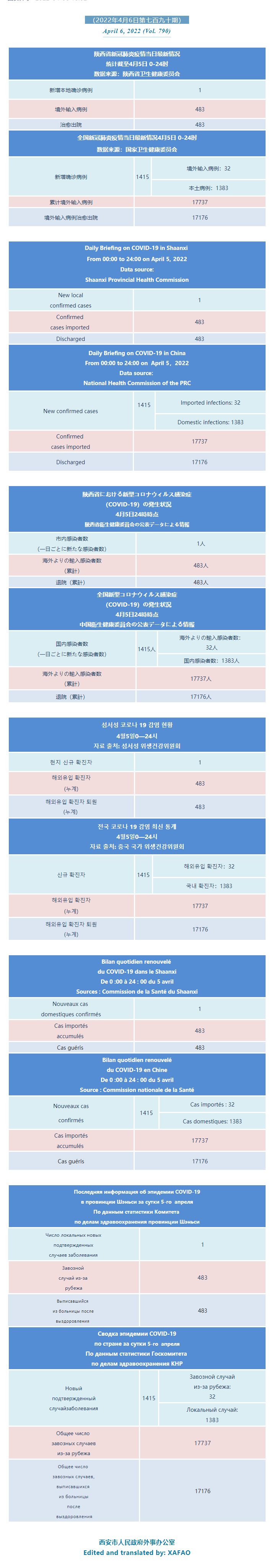 西安市外办向在西安的外国人通报每日疫情(第七百九十期)