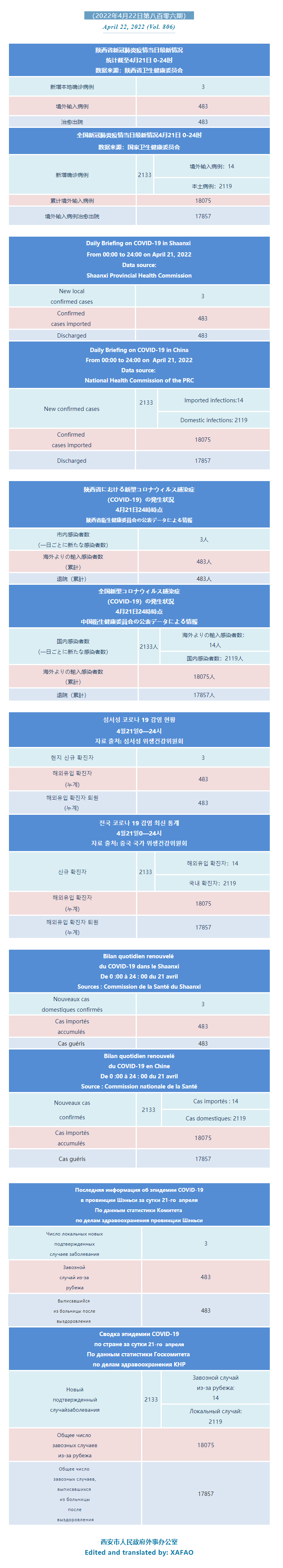 西安市外办向在西安的外国人通报每日疫情(第八百零六期)