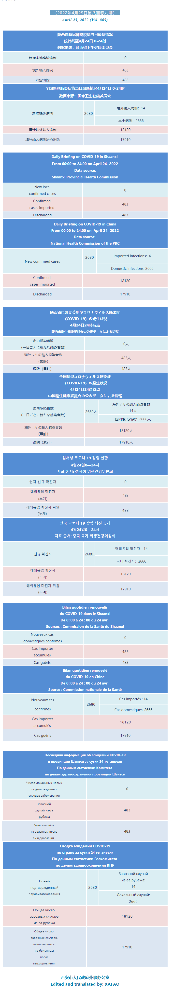 西安市外办向在西安的外国人通报每日疫情(第八百零九期)