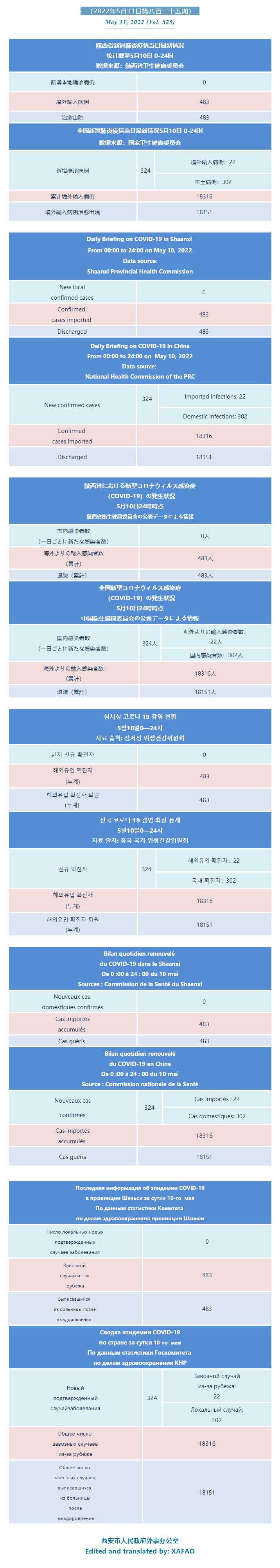 西安市外办向在西安的外国人通报每日疫情(第八百二十五期)