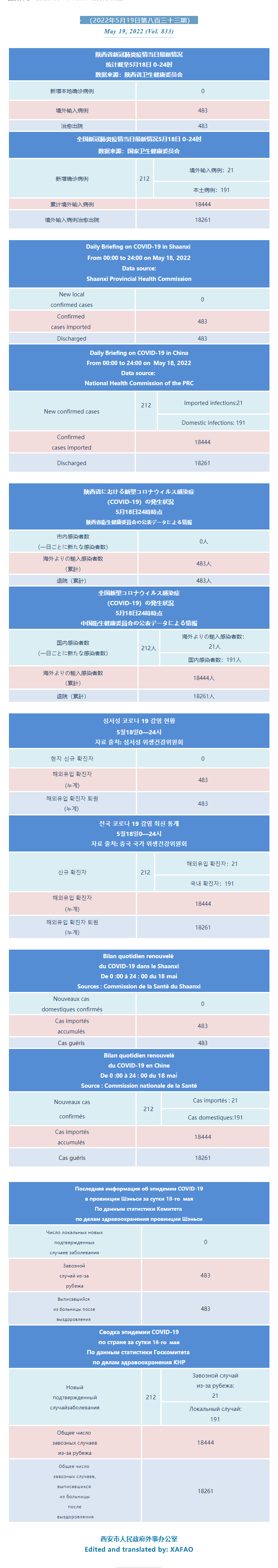西安市外办向在西安的外国人通报每日疫情(第八百三十三期)