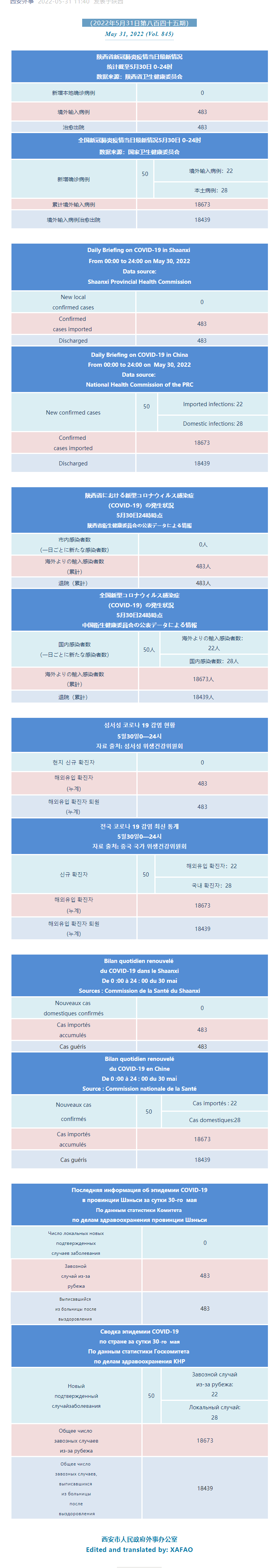 西安市外办向在西安的外国人通报每日疫情(第八百四十五期)