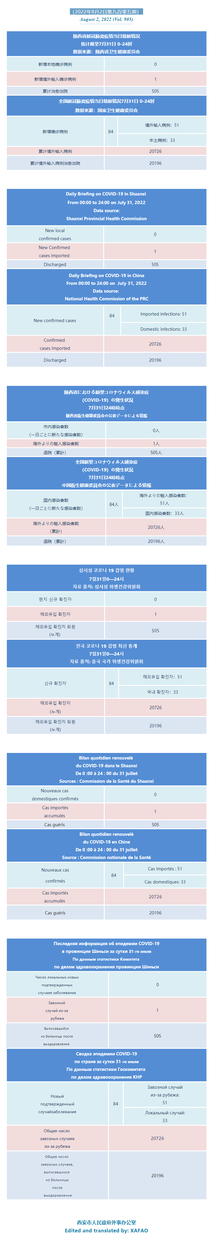 西安市外办向在西安的外国人通报每日疫情(第九百零五期)