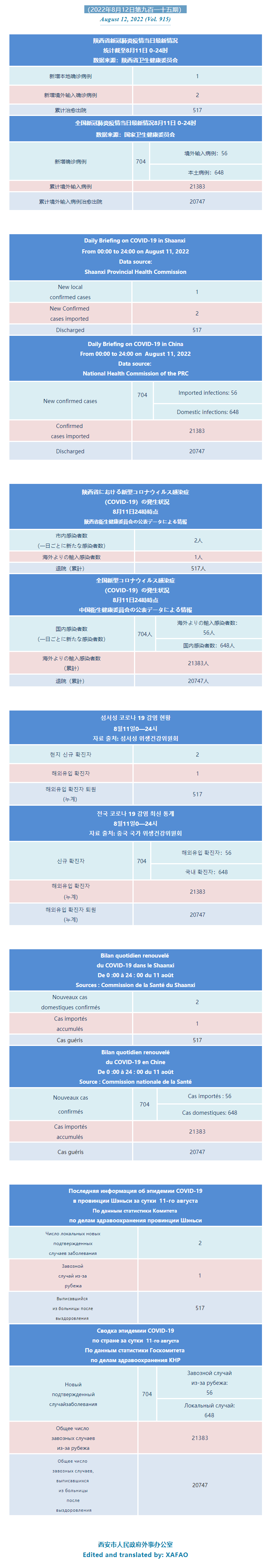 西安市外办向在西安的外国人通报每日疫情(第九百一十五期)