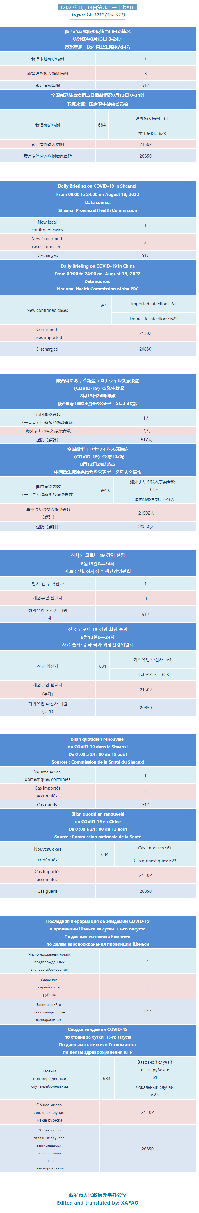 西安市外办向在西安的外国人通报每日疫情(第九百一十七期)