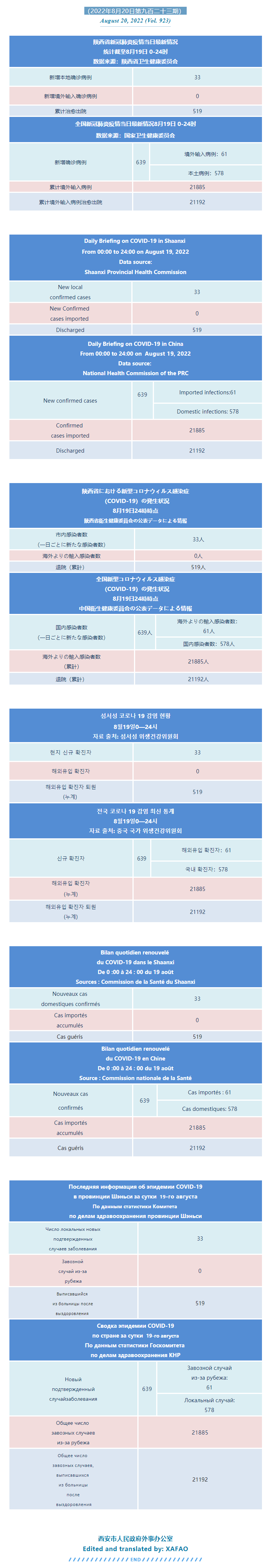 西安市外办向在西安的外国人通报每日疫情(第九百二十三期)