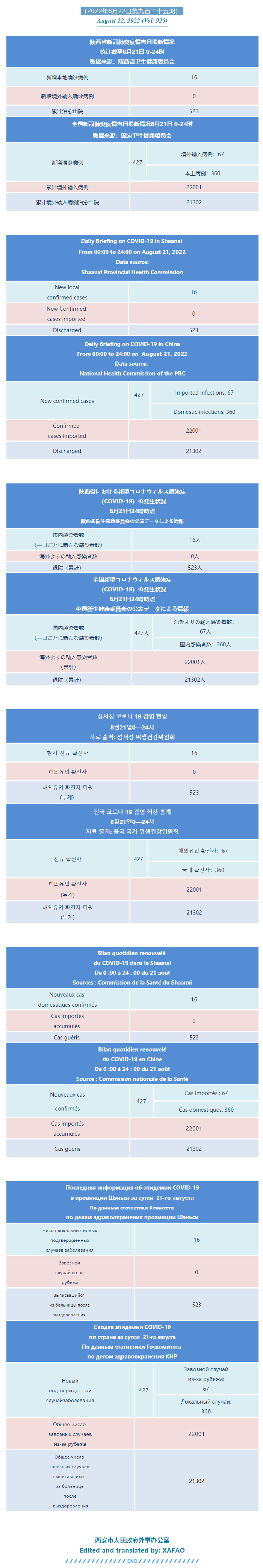 西安市外办向在西安的外国人通报每日疫情(第九百二十五期)