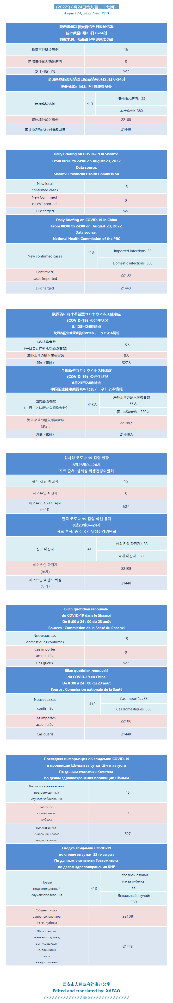 西安市外办向在西安的外国人通报每日疫情(第九百二十七期)