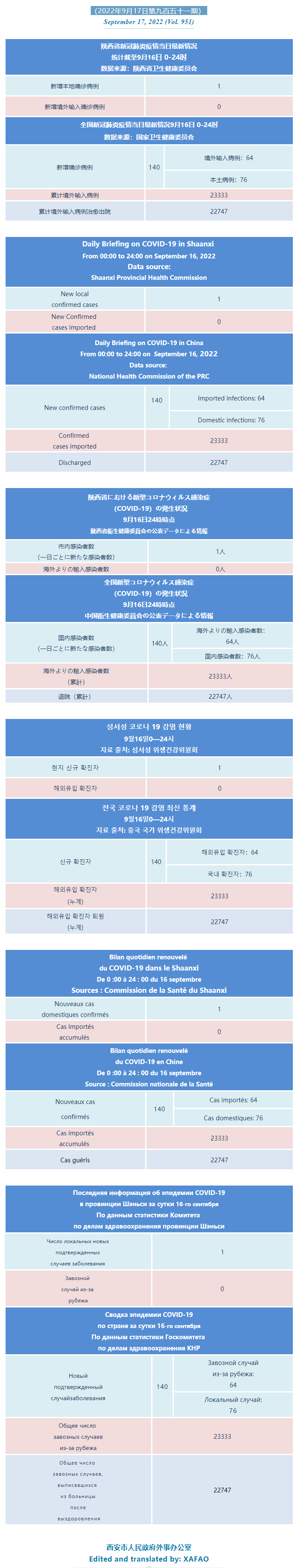 西安市外办向在西安的外国人通报每日疫情(第九百五十一期)