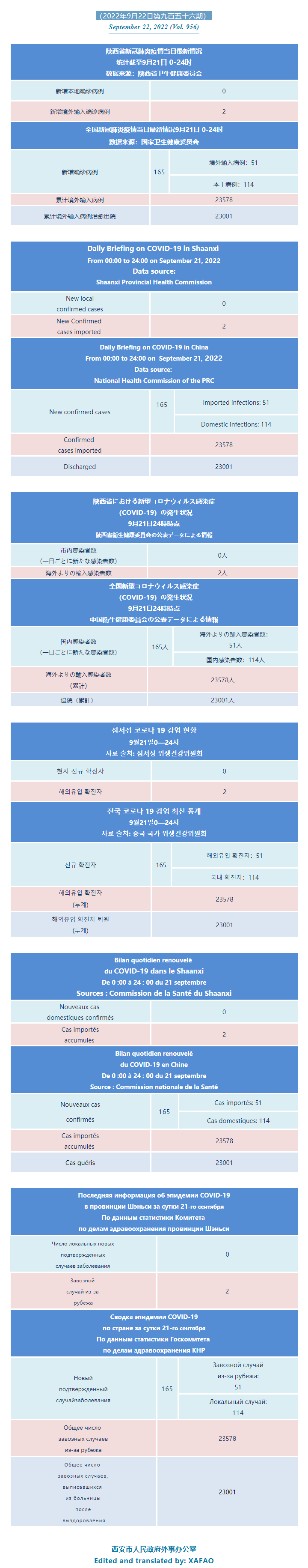 西安市外办向在西安的外国人通报每日疫情(第九百五十六期)