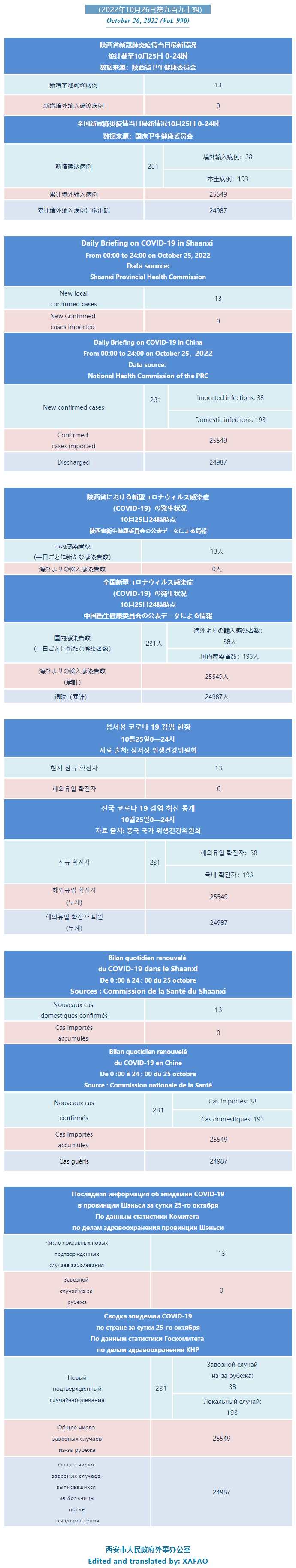 西安市外办向在西安的外国人通报每日疫情(第九百九十期)