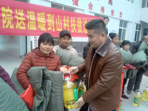 根据村民的具体需求,在短短的一个月之后,由云千里牵头策划并联合“四支队伍”共同组建的周沟村扶贫“爱心超市”开张了!这个扶贫“爱心超市”可是全临潼区为脱贫攻坚而创新首建!他利用自己的朋友圈和人脉关系,积极发动社会爱心团队和爱心人士给村里的“爱心超市”捐来了米、面、油、文具、衣服和锅碗瓢盆等生活必用品,到目前为止加上帮扶单位的捐赠,“爱心超市”接受捐赠物品的总价值已超过12万元之多。超市里的所有物品都经超市负责人登记后,按村里的贫困户和村民具体所需,由帮扶干部精准的送往全村146户人家,做到了“爱心超市”物品发放到户全覆盖。村里的刘大爷拿着“爱心超市”给免费送的收音机和电暖气高兴的一路念叨:“共产党真是太好了!这个冬天我们全村都是暖和的!”