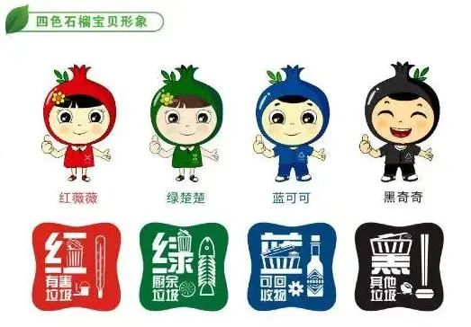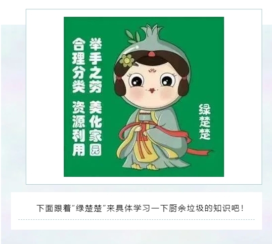 “绿楚楚”是西安市生活垃圾分类“四色石榴宝宝”之一,代表厨余垃圾。
