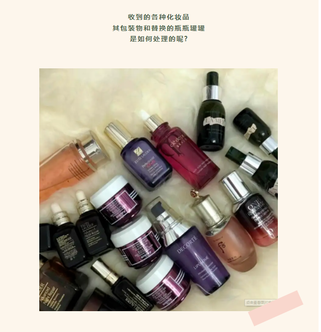 化妆品的包装盒和清洗后空瓶的化妆品罐体属于可回收物,应投入蓝色可回收物桶内;过期化妆品的化学成分发生改变,随意乱扔会污染生态环境,它们属于有害垃圾,应投入红色有害垃圾桶内。以上情况都应该对应归位正确投放。