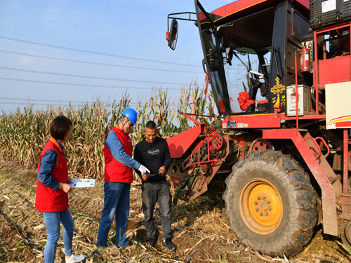 10月13日,临潼供电公司“红马甲”深入田间地头,开展安全用电检查,宣传安全用电知识,叮嘱收割机师傅收割玉米期间远离电杆电线,提高秋收安全防范意识,助力秋粮颗粒归仓。