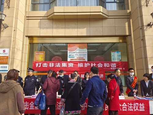 近日,临潼区金融办联合公安临潼分局、区检察院、区法院、人行临潼支行、海丝村镇银行、建设银行、西安银行,在海丝村镇银行门前开展“防范和打击金融领域违法犯罪,维护广大人民合法权益”主题宣传。