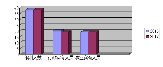 截止2017年底,我街办人员编制38人,其中行政编制20人,事业编制18人;2017年底实有人员37人,其中行政人员19人,事业人员18人。单位管理的退休人员20人。