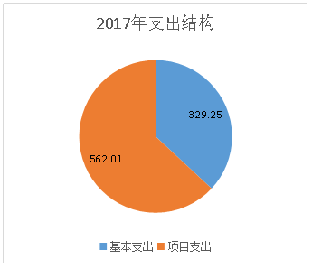 2017一般公共预算财政拨款支出共891.26万元,其中基本支出329.25万元,项目支出562.01万元。