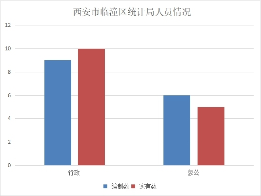 截止2018年底西安市临潼区统计局编制共15人,其中行政编制9人,参公编制6人。年末实有12人,其中行政实有9人,参公实有3人。