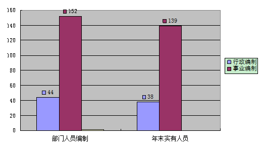 截至2017年底,本部门人员编制196人,其中行政编制44人、事业编制38人;实有人员177人,其中行政152人、事业