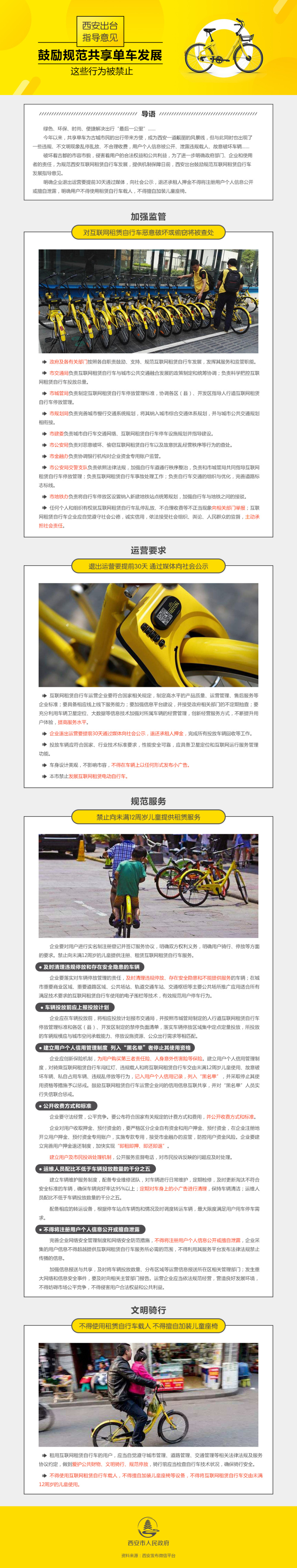 西安出台指导意见鼓励规范共享单车发展 这些行为被禁止!