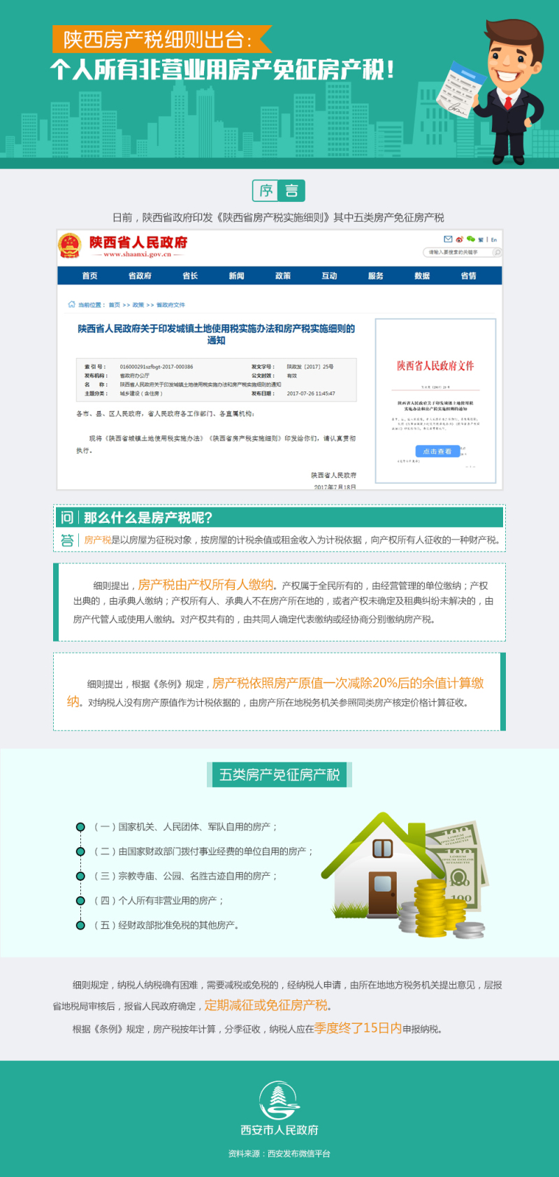 陕西房产税细则出台:个人所有非营业用房产免征房产税!