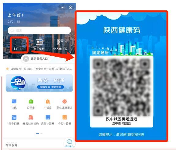 居民如果已注册陕西健康码,需在西安市范围内扫码登记通行时,可在微信或支付宝搜索进入“陕西健康码”小程序,进入小程序后点击“扫一扫“,识别“西安市民一码通”场所码,凭绿码通行,无需重复注册。