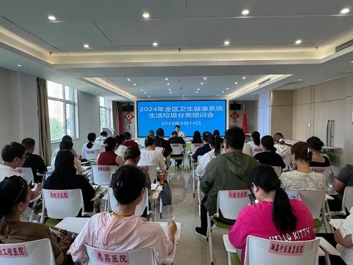 为进一步推进全区卫生健康系统垃圾分类工作,巩固提升全系统干部职工对垃圾分类知晓率和参与率和准确投放率,2024年8月14日下午,临潼区卫生健康局组织召开全区卫健系统2024年生活垃圾分类培训会议。各区属公立医院、直属医疗卫生单位、基层医疗机构、上属医疗机构及社会办医疗机构等46家医疗机构业务负责同志50余人参加了会议。
