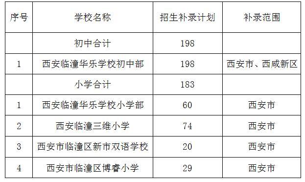 2021年我区民办小学招生计划数390人,2021年6月27日电脑随机录取207人,剩余招生计划183人,我区民办义务教育学校向我局提交补录剩余招生计划申请,我局按照《西安市教育局关于做好2021年义务教育学校招生入学工作的通知》(市教发〔2021〕60号)的要求,向市教育局提出补录申请,经市教育局核准,现将2021年我区民办义务教育学校招生补录计划公布如下: