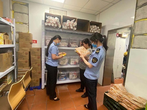 针对我区高考考点周边食品经营单位及有考生就餐的宾馆、旅店等重点区域,执法人员仔细检查了食品经营许可证、食品加工场所环境卫生、从业人员健康证明和个人卫生、餐饮具洗消、食品加工安全、食品原辅料索证索票、台账记录、食品留样等情况。