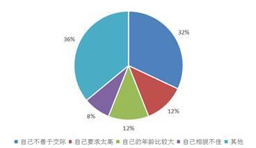 51名青年被访者中,认为选择婚恋对象困难的有25人,占比49%;认为选择婚恋对象很容易的26人,占比51%,近半数调查对象认为找婚恋对象困难。据了解,有64%的青年认为因自己心理因素和社交习惯导致找婚恋对象困难。其中,“自己不善于交际”、“自己要求太高”、“自己的年龄比较大”、“自己相貌不佳”分别占比32%、12%、12%、8%(见图2)。