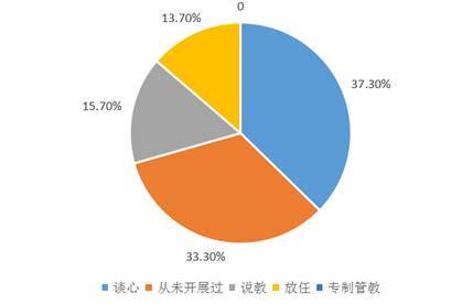 在对“您的父母是怎样对你开展婚恋观教育的?”这一问题的调查表明,选“谈心”的青年仅有 37.3%,选“从未开展过”的青年却有33.3%(见图3)。