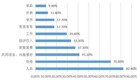 受市场经济交换原则的影响及西方价值观念的冲击,同时,社会生活压力的日益增长,部分青年在择偶上趋于务实,越来越看重外在的物质条件。随着经济的快速发展,人们的婚恋观念也发生了变化,尤其是受到拜金主义的侵蚀,致使部分青年将婚恋同利益交换挂钩,家庭背景和经济收入成为婚恋选择时的主要参考因素。在“选择恋爱对象时,你最重视哪方面”这一问题的调查中,选择“性格、人品”的人有82.4%、“性格”的人有70.6%、“共同语言与兴趣爱好”的人有41.2%,当代青年面临择偶问题上愈加现实和理性(见图1)。