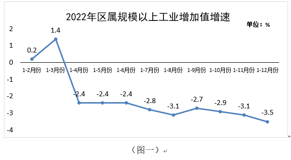 2022年,区属规模以上工业增加值同比下降3.5%,降幅较上年扩大1.6个百分点。