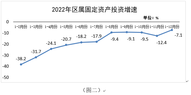 2022年,区属固定资产投资同比下降7.1%。降幅较上年收窄11.3个百分点。
