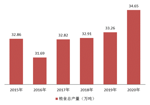 生产能力明显提升,种植面积总体稳定。“十三五”期间,临潼粮食总产稳中有升,粮食生产实现五连丰,2020年全区粮食总产达到34.7万吨,较“十二五”末增加1.8万吨,增长5.4%,位居西安各区县第一。