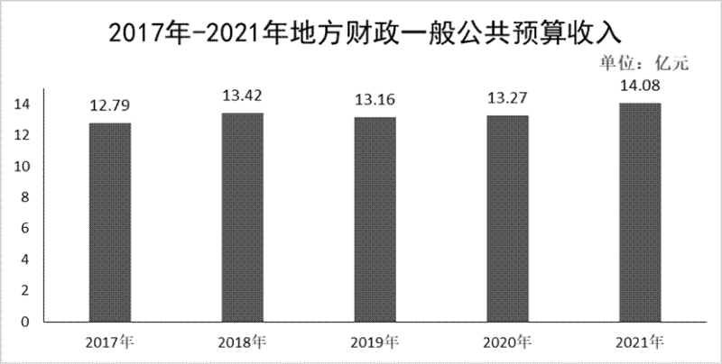 全年财政总收入37.00亿元,比上年增长59.9%。全年地方财政一般公共预算收入14.08亿元,增长6.1%。全年税收收入8.13亿元,增长16.3%。全年财政总支出67.00亿元,增长11.0%,全年地方财政一般公共预算支出47.58亿元,增长2.3%。