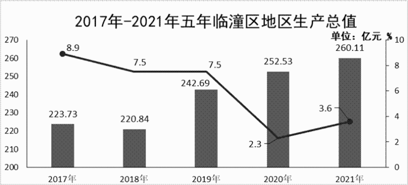 根据市(区)生产总值统一核算结果,全年地区生产总值[2](GDP)260.11亿元,按可比价格计算,比上年增长3.6%。
