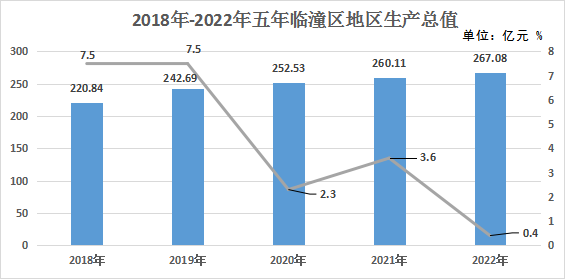 根据市(区)生产总值统一核算结果,全年地区生产总值[2](GDP)267.08亿元,按可比价格计算,比上年增长0.4%。