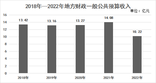 全年财政总收入22.32亿元,比上年下降9.9%。全年地方财政一般公共预算收入10.22亿元,下降27.4%。全年税收收入7.28亿元,下降10.5%。全年财政总支出53.38亿元,下降14.9%,全年地方财政一般公共预算支出45.04亿元,下降5.3%。