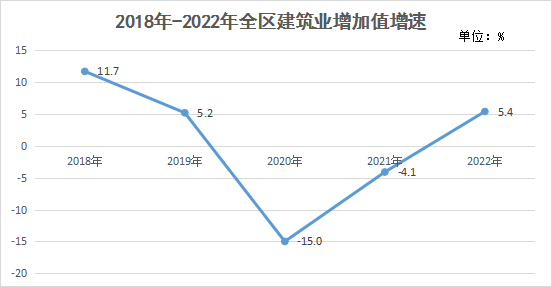 区内具有资质等级的总承包和专业承包建筑业企业完成建筑业总产值12.61亿元,比上年下降0.1%,其中,国有及国有控股企业总产值2.78亿元,增长52.7%,所有资质等级企业签订合同额41.40亿元,增长63.7%。