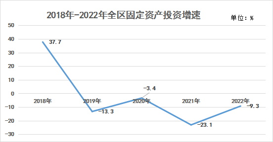 2022年,全区固定资产投资(不含农户)比上年下降9.3%,其中工业投资增长28.9%;民间投资下降6.2%;工业技改投资下降52.3%。