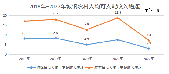 2022年,全年全区居民人均可支配收入24297元,比上年名义增长4.1%。其中,城镇常住居民人均可支配收入35752元,比上年名义增长2.9%;农村常住居民人均可支配收入18344元,比上年名义增长4.3%。