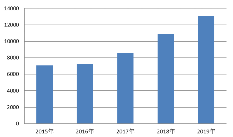1.供气量逐年上涨。从华润燃气公司了解到,临潼城区近年来燃气供应量呈现逐年快速上涨趋势。2015年供应量为7088万立方米;2016年为7205万立方米,同比增长1.7%;2017年为8533万立方米,同比增长18.4%;2018年达到10835万立方米,首次突破1亿立方米,同比增长27.0%;2019年达到13069万立方米,同比增长20.6%。2019年较2015年用气量累计增加5981立方米,累计增长84.4%(见图1)。