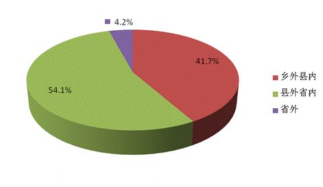(二)外出地区九成为省内,从事行业以建筑业、服务业为主
