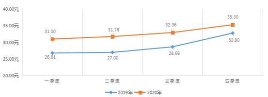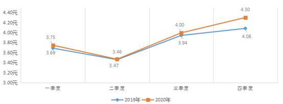3.牛奶价格小幅上涨。冬季牛奶价格呈季节性上涨,四季度同比涨幅增加,四季度养殖场出售牛奶价格4.30元/公斤,环比上涨7.5%,同比上涨5.4%。