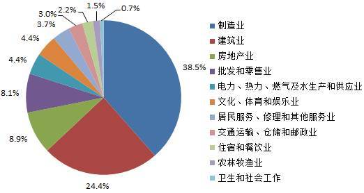 本次调查采用线上问卷调查,共135家企业参与调查。按照行业分类,制造业占38.5%,建筑业占24.4%,房地产业占8.9%,批发零售企业占8.1%(图1)。按企业规模分类,大型企业占3.7%、中型企业占27.4%、小微企业占68.9%。