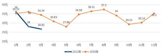 一季度鸡蛋价格上涨,1月份鸡蛋价格冲高到10.60元/公斤,之后回落,春节过后,鸡蛋走货缓慢,3月份有的养殖户已经积压了10天的鸡蛋未销售,鸡蛋价格下跌到7.40元/公斤。一季度鸡蛋平均价格8.13元/公斤,环比上涨18.2%,同比上涨15.2%;肉鸡平均价格8.82元/公斤,环比上涨5.6%,同比持平。