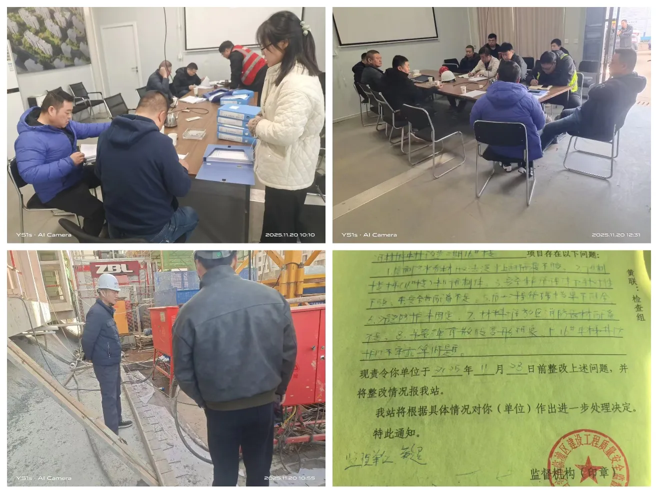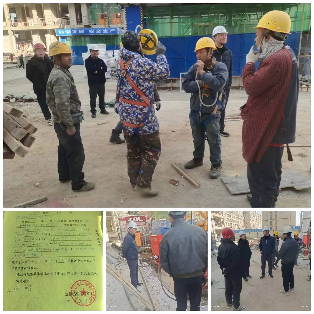 经检查发现,各施工单位能够严格按照文件要求开展自查自纠,现场安全防护措施基本到位,但仍存在个别问题:1、危大工程技术档案记录不完整;2、现场临时用电线路敷设不规范;3、个别区域安全警示标志设置不足;4、现场材料堆放混乱,消防器材配备不足。针对发现的问题,检查组当场提出了具体整改意见及时下发责令整改通知书,并要求各参建、监理单位严格落实整改措施,督促施工单位立即整改存在的安全隐患,确保各项安全防护措施到位。