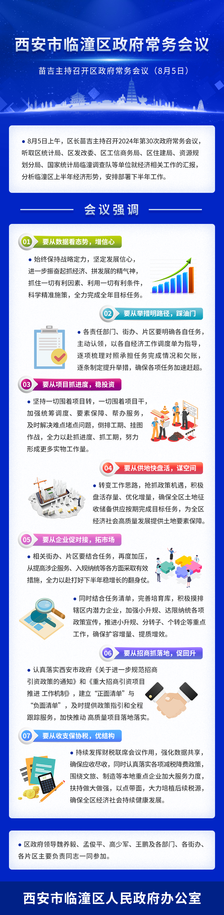 该内容为临潼区政府常务会议(8月5日)的图解信息。会议内容未详细提及,但通过图解形式进行展示。
